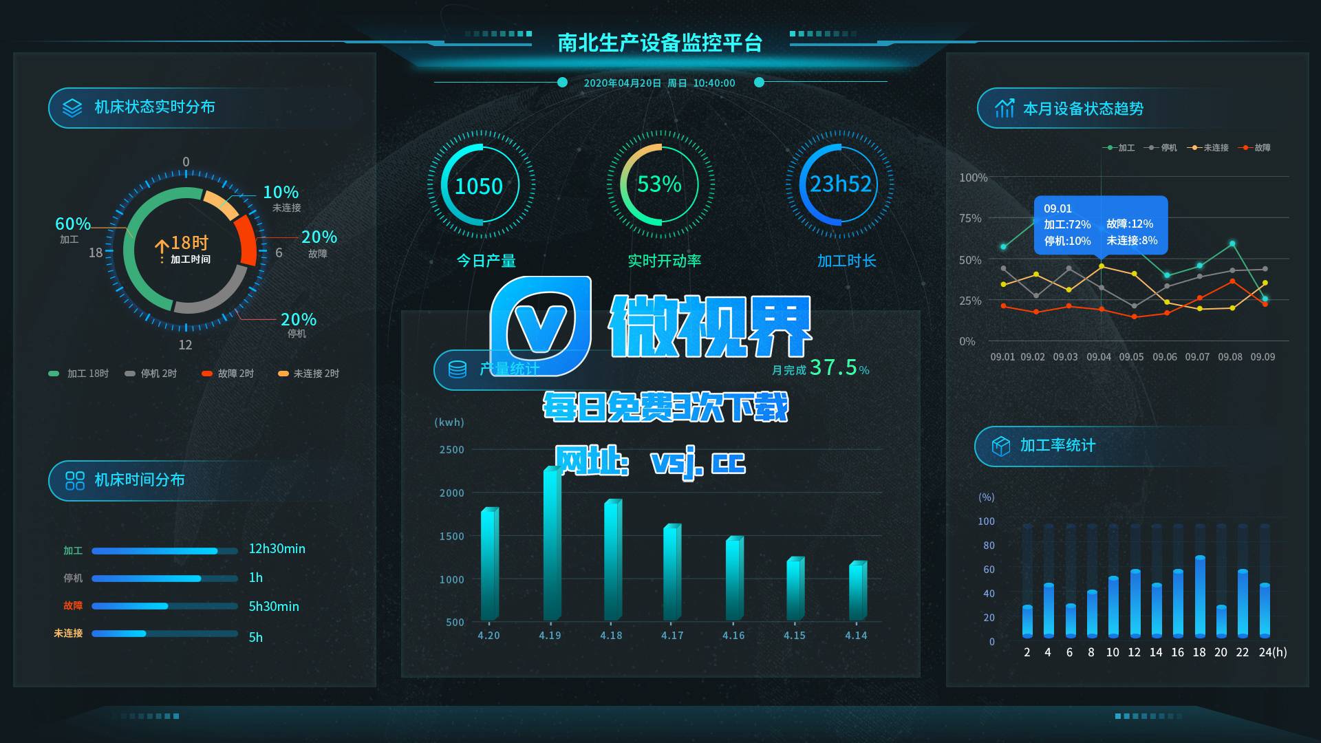 1201_【大屏UI】生产设备监控平台_PSD素材下载更多免费内容请访问微世界VSJ.cc