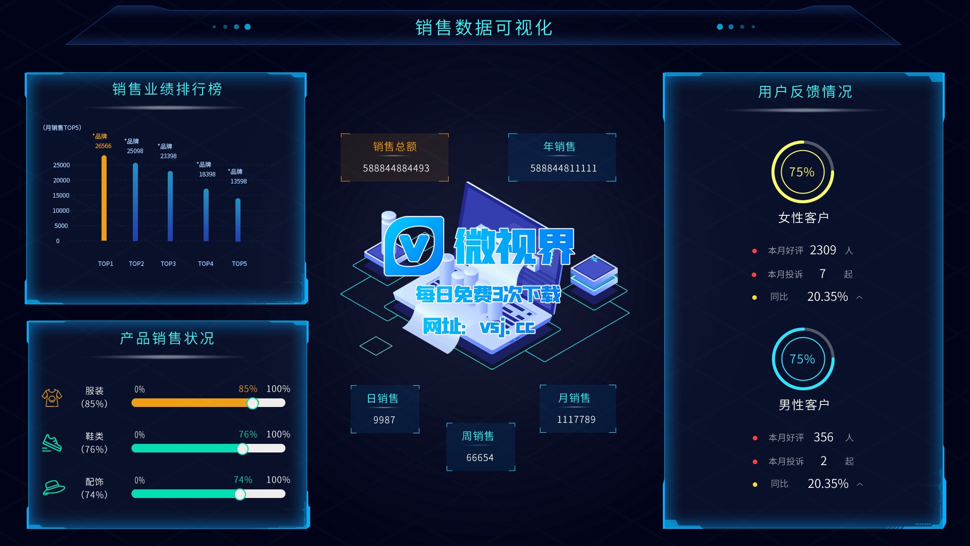 1239_【大屏UI】销售数据可视化 平台_PSD素材下载更多免费内容请访问微世界VSJ.cc
