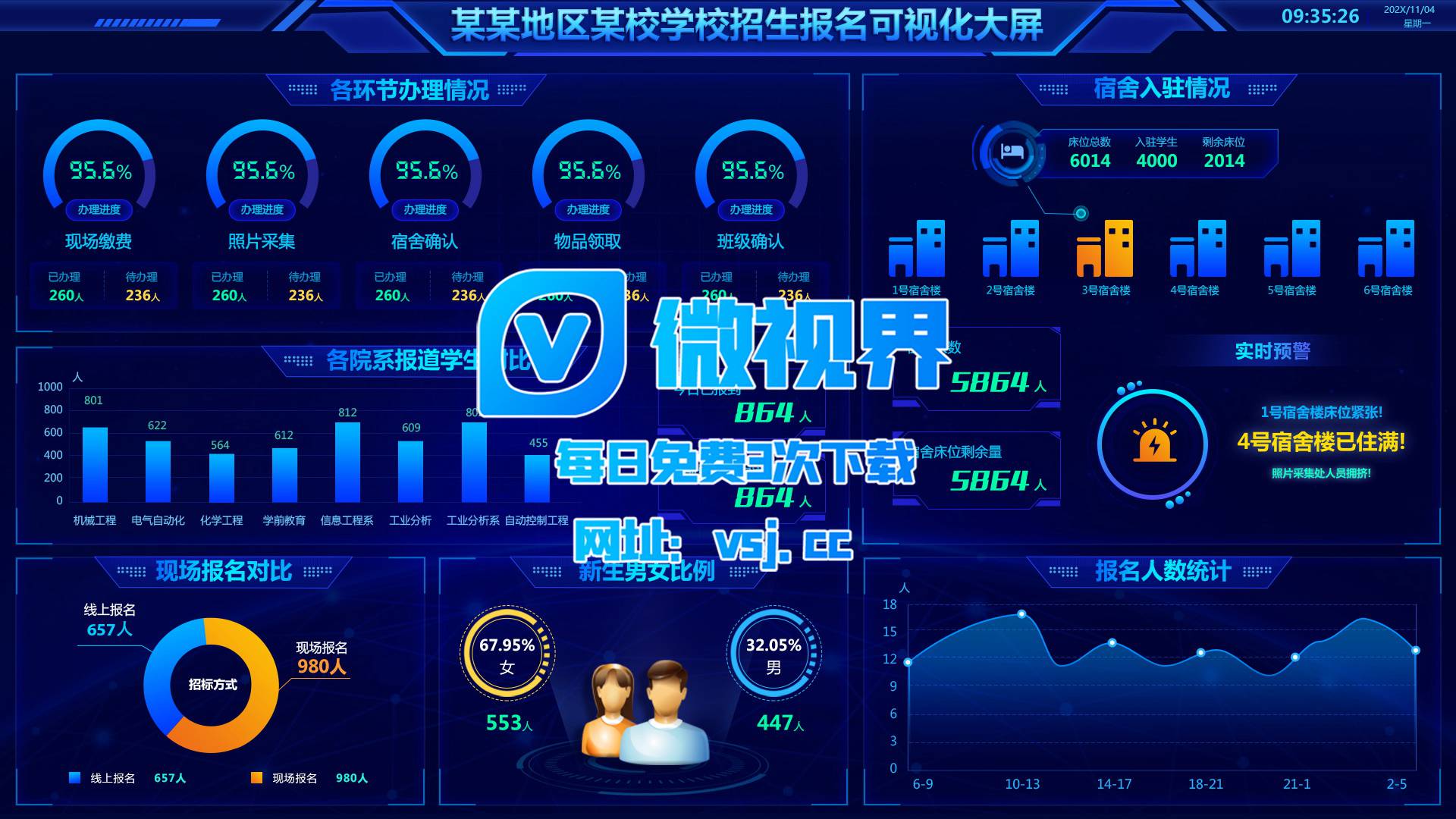 1244_【大屏UI】校园招生报名数据平台_PSD素材下载更多免费内容请访问微世界VSJ.cc