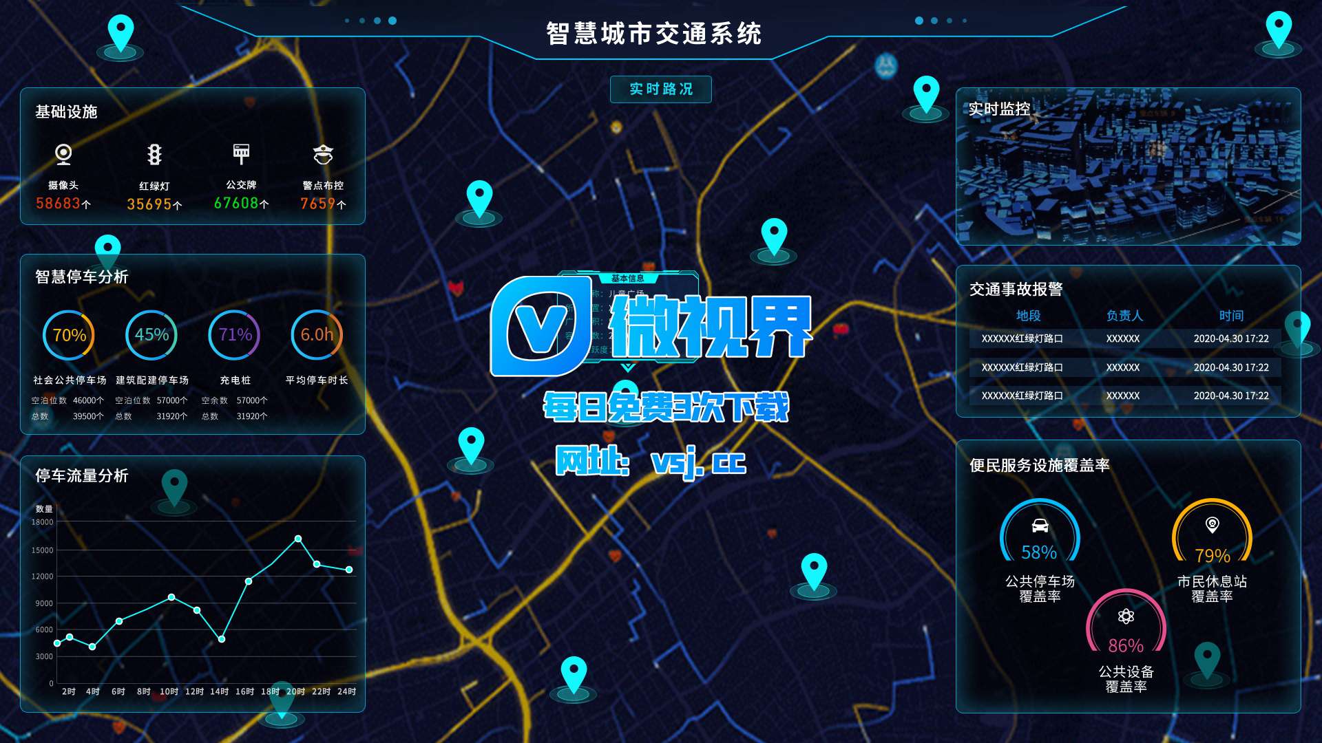 1251_【大屏UI】智慧交通系统_PSD素材下载更多免费内容请访问微世界VSJ.cc