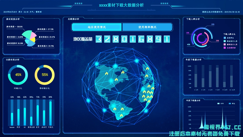 【UI大屏】1320_科技感 数据化大屏幕PSD素材 数据可视化 (80)更多免费内容请访问微世界VSJ.cc 声明:本站所有文章,如无特殊说明或标注,均为网络收集。任何个人或组织,在未征得原作者同意时,禁止商用。如若本站内容侵犯了原著者的合法权益,可联系我们进行处理。