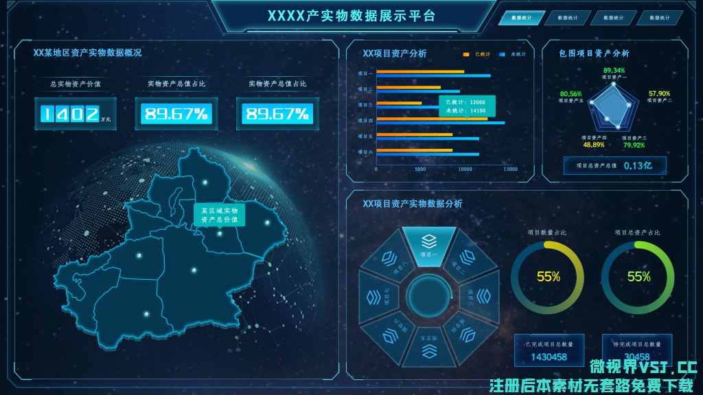 【UI大屏】1324_科技感 数据化大屏幕PSD素材 数据可视化 (76)更多免费内容请访问微世界VSJ.cc