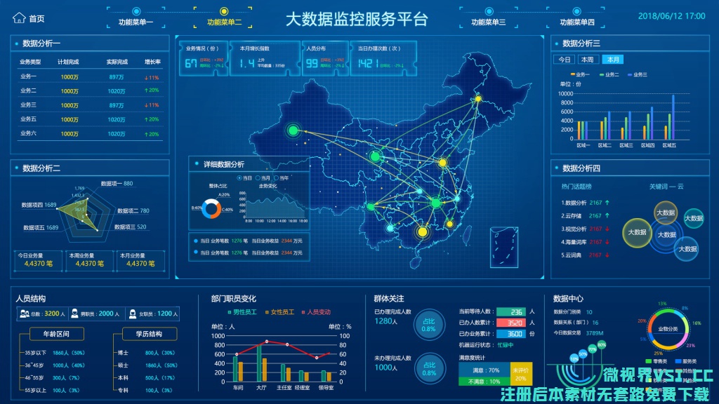 【UI大屏】1335_科技感 数据化大屏幕PSD素材 数据可视化 (65)更多免费内容请访问微世界VSJ.cc