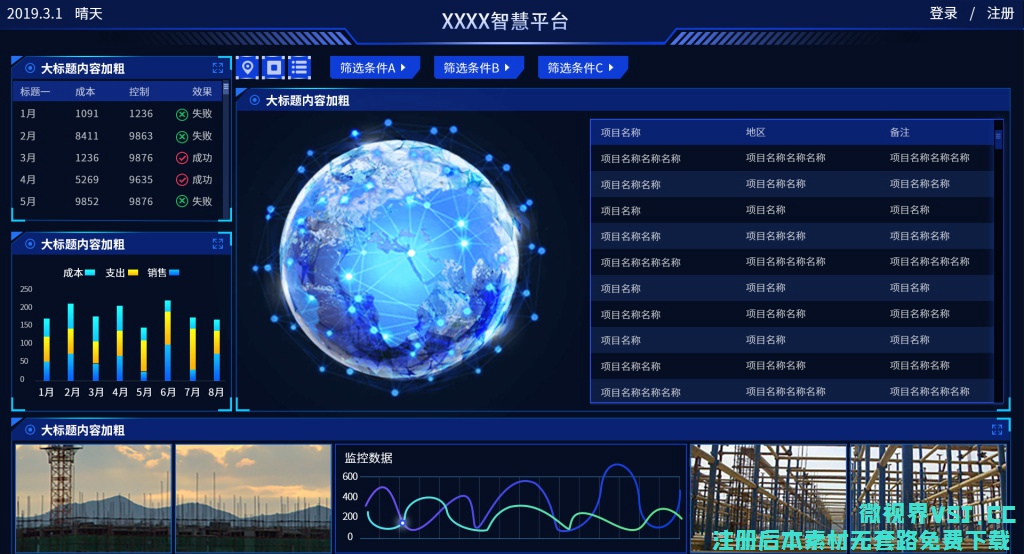 【UI大屏】1340_科技感 数据化大屏幕PSD素材 数据可视化 (60)更多免费内容请访问微世界VSJ.cc 声明:本站所有文章,如无特殊说明或标注,均为网络收集。任何个人或组织,在未征得原作者同意时,禁止商用。如若本站内容侵犯了原著者的合法权益,可联系我们进行处理。