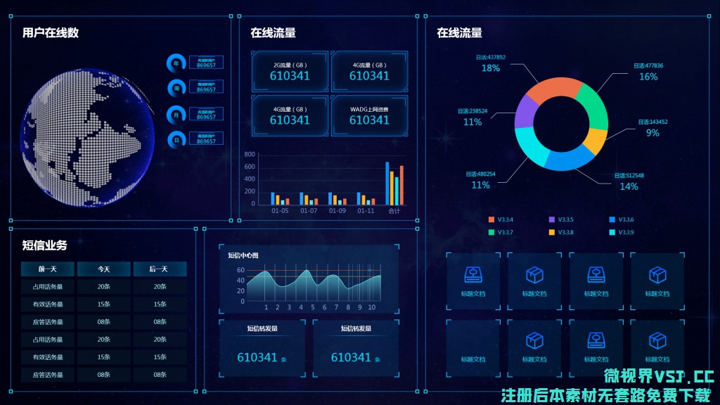 【UI大屏】1359_科技感 数据化大屏幕PSD素材 数据可视化 (41)更多免费内容请访问微世界VSJ.cc 声明:本站所有文章,如无特殊说明或标注,均为网络收集。任何个人或组织,在未征得原作者同意时,禁止商用。如若本站内容侵犯了原著者的合法权益,可联系我们进行处理。
