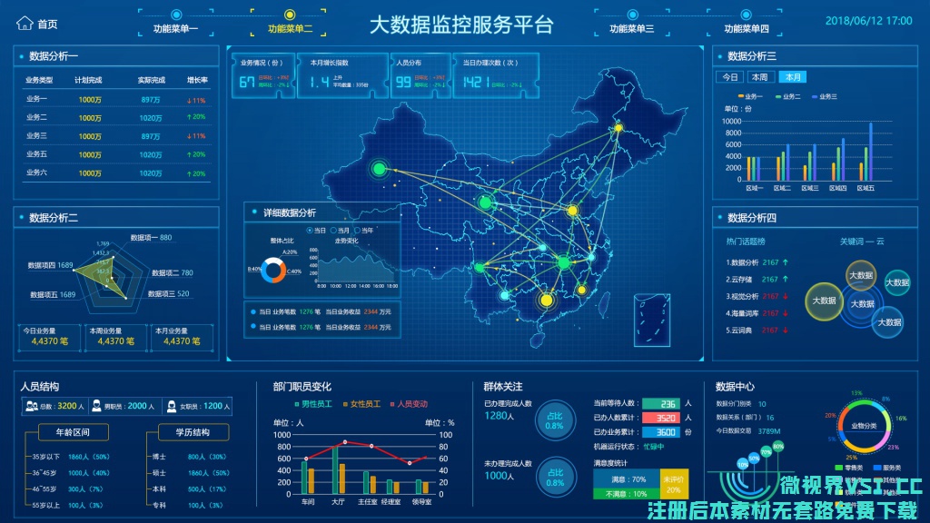 【UI大屏】1370_科技感 数据化大屏幕PSD素材 数据可视化 (30)更多免费内容请访问微世界VSJ.cc