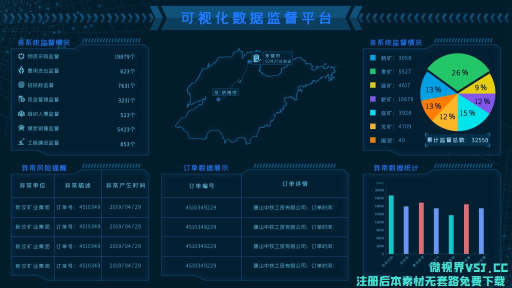 【大屏UI】_科技感 数据化大屏幕PSD素材 数据可视化 (82)更多免费内容请访问微世界VSJ.cc