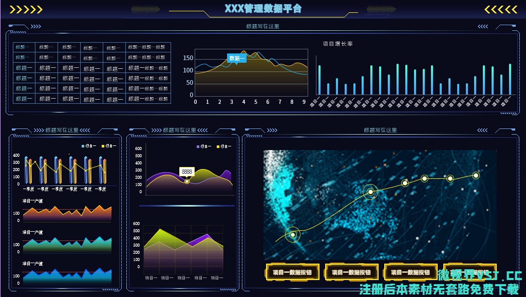 【大屏UI】_科技感 数据化大屏幕PSD素材 数据可视化 (84)更多免费内容请访问微世界VSJ.cc