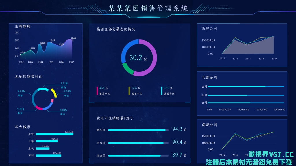 【大屏UI】_科技感 数据化大屏幕PSD素材 数据可视化 (103)更多免费内容请访问微世界VSJ.cc