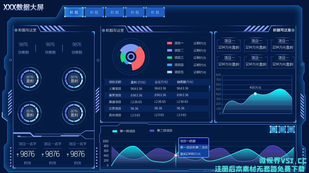 【大屏UI】_科技感 数据化大屏幕PSD素材 数据可视化 (112)更多免费内容请访问微世界VSJ.cc