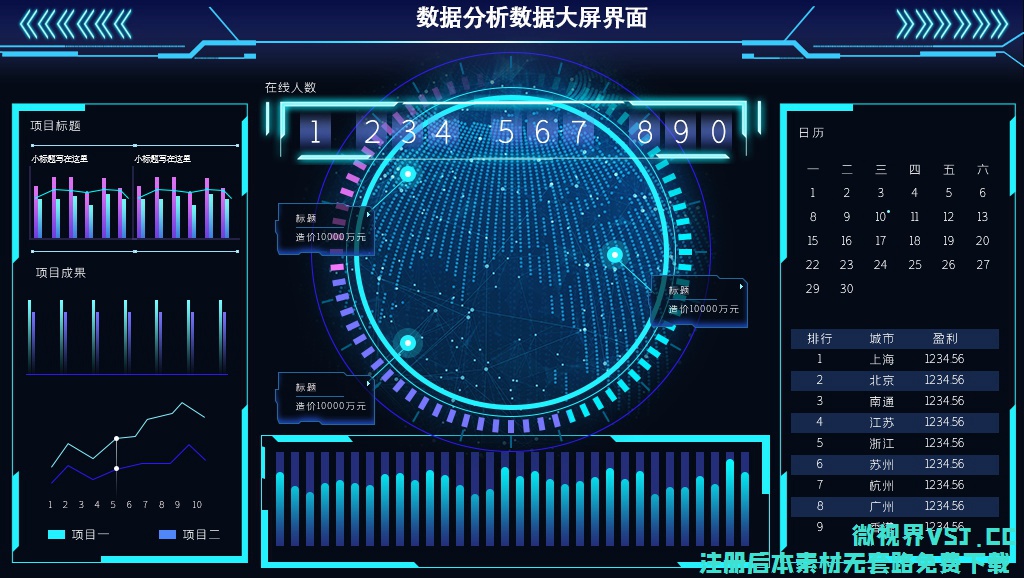 【大屏UI】_科技感 数据化大屏幕PSD素材 数据可视化 (124)更多免费内容请访问微世界VSJ.cc