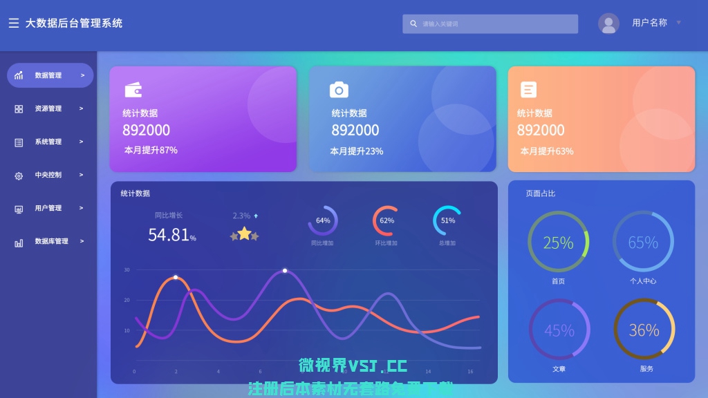 【大屏UI】1508_科技感 数据化大屏幕PSD素材 数据可视化 (253)更多免费内容请访问微世界VSJ.cc