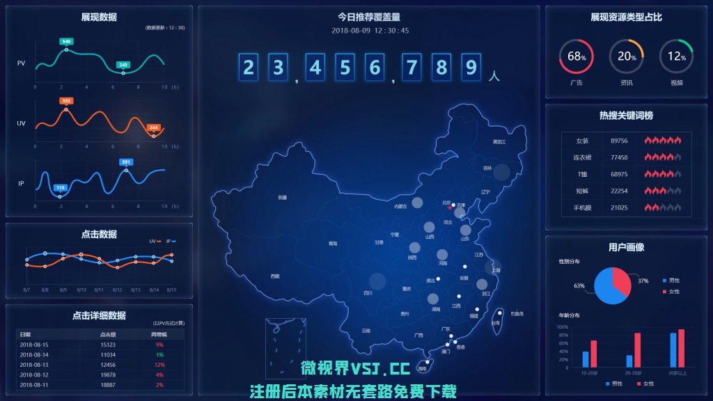 【大屏UI】1518_科技感 数据化大屏幕PSD素材 数据可视化 (263)更多免费内容请访问微世界VSJ.cc 声明:本站所有文章,如无特殊说明或标注,均为网络收集。任何个人或组织,在未征得原作者同意时,禁止商用。如若本站内容侵犯了原著者的合法权益,可联系我们进行处理。