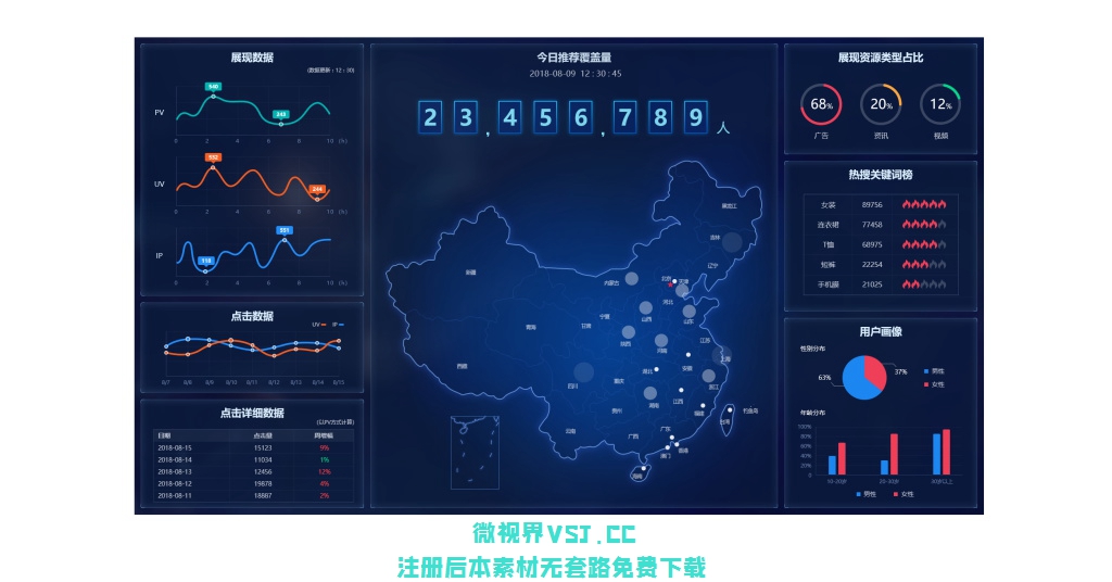 【大屏UI】1549_科技感 数据化大屏幕PSD素材 数据可视化 (294)更多免费内容请访问微世界VSJ.cc 声明:本站所有文章,如无特殊说明或标注,均为网络收集。任何个人或组织,在未征得原作者同意时,禁止商用。如若本站内容侵犯了原著者的合法权益,可联系我们进行处理。