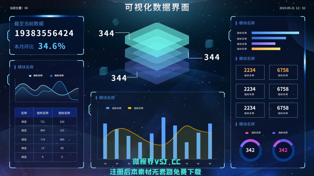 【大屏UI】1574_科技感 数据化大屏幕PSD素材 数据可视化 (319)更多免费内容请访问微世界VSJ.cc