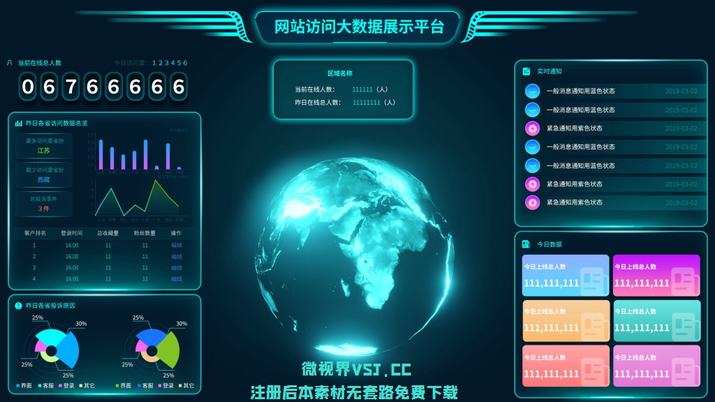 【大屏UI】1575_科技感 数据化大屏幕PSD素材 数据可视化 (320)更多免费内容请访问微世界VSJ.cc 声明:本站所有文章,如无特殊说明或标注,均为网络收集。任何个人或组织,在未征得原作者同意时,禁止商用。如若本站内容侵犯了原著者的合法权益,可联系我们进行处理。