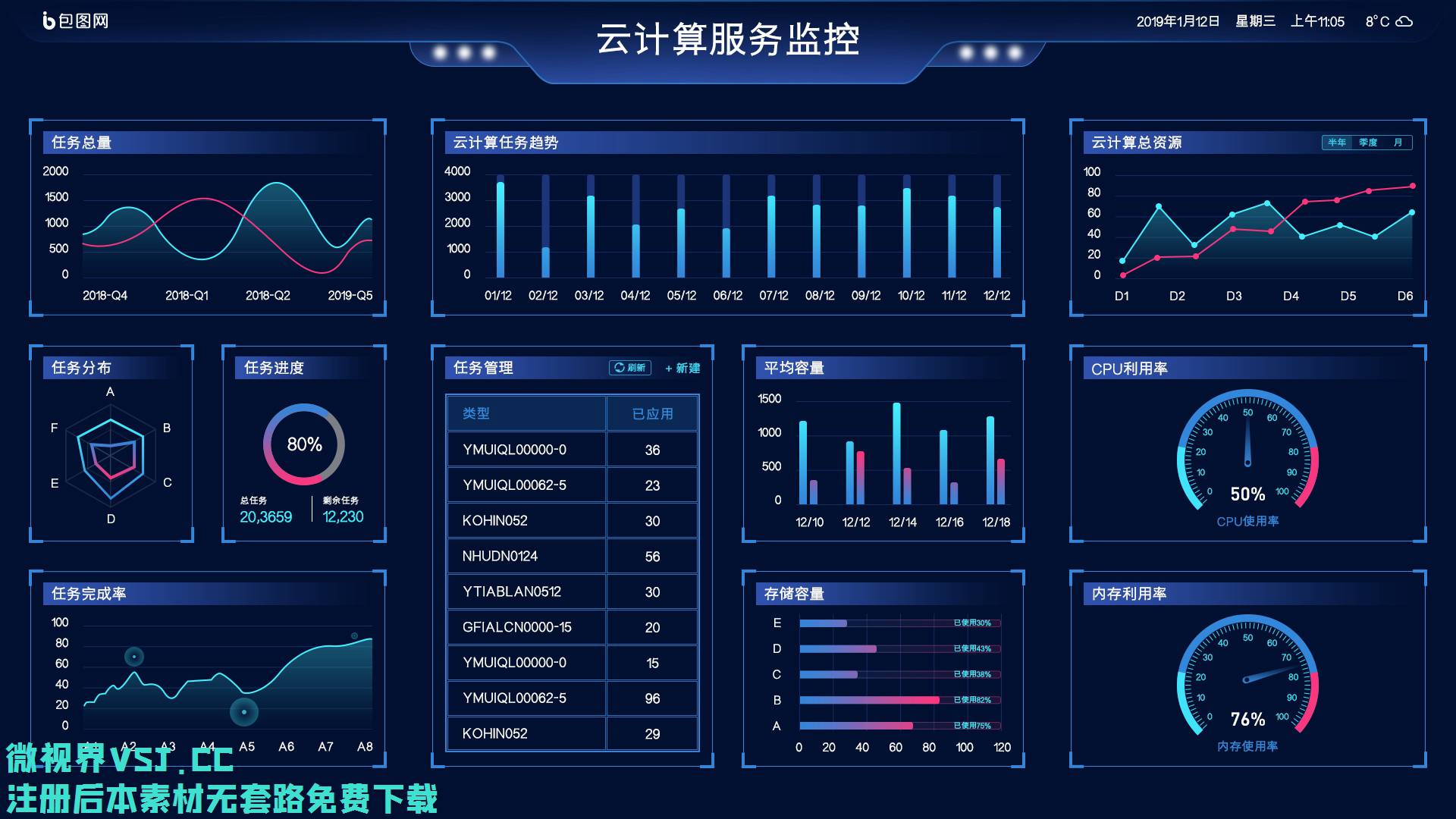 【大屏UI】0919_可视化数据云监控页面_PSD素材下载更多免费内容请访问微世界VSJ.cc 声明:本站所有文章,如无特殊说明或标注,均为网络收集。任何个人或组织,在未征得原作者同意时,禁止商用。如若本站内容侵犯了原著者的合法权益,可联系我们进行处理。