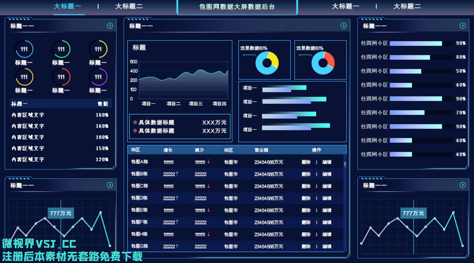 【大屏UI】0934_深色大气互联网数据大屏软件界面_PSD素材下载更多免费内容请访问微世界VSJ.cc