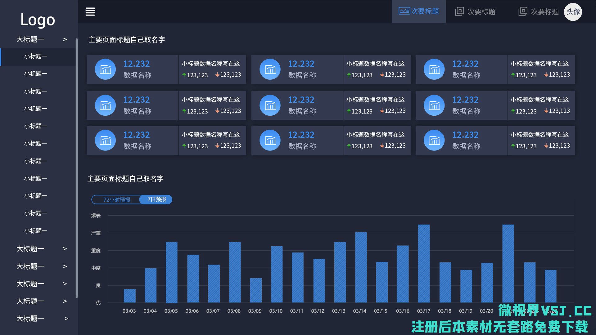 【后台UI】1008_数据管理后台PSD设计_微视界_PSD素材下载更多免费内容请访问微世界VSJ.cc 声明:本站所有文章,如无特殊说明或标注,均为网络收集。任何个人或组织,在未征得原作者同意时,禁止商用。如若本站内容侵犯了原著者的合法权益,可联系我们进行处理。
