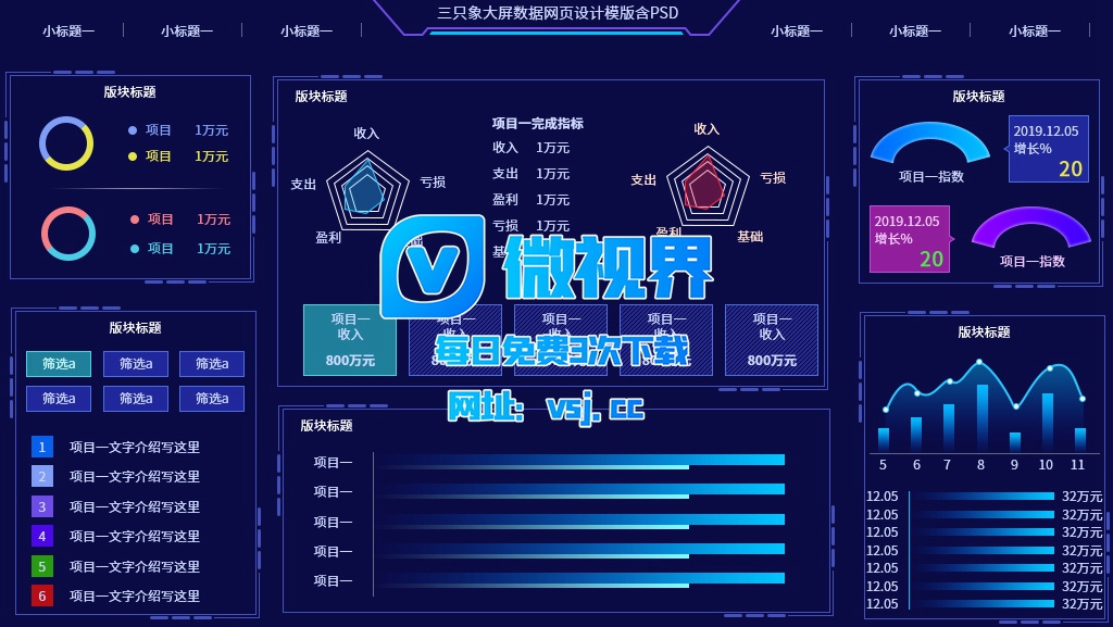 1101_【大屏UI】web数据可视化_PSD素材下载更多免费内容请访问微世界VSJ.cc 声明:本站所有文章,如无特殊说明或标注,均为网络收集。任何个人或组织,在未征得原作者同意时,禁止商用。如若本站内容侵犯了原著者的合法权益,可联系我们进行处理。