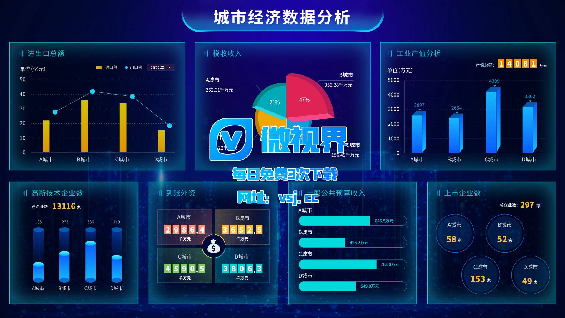 1105_【大屏UI】城市经济数据分析_PSD素材下载更多免费内容请访问微世界VSJ.cc