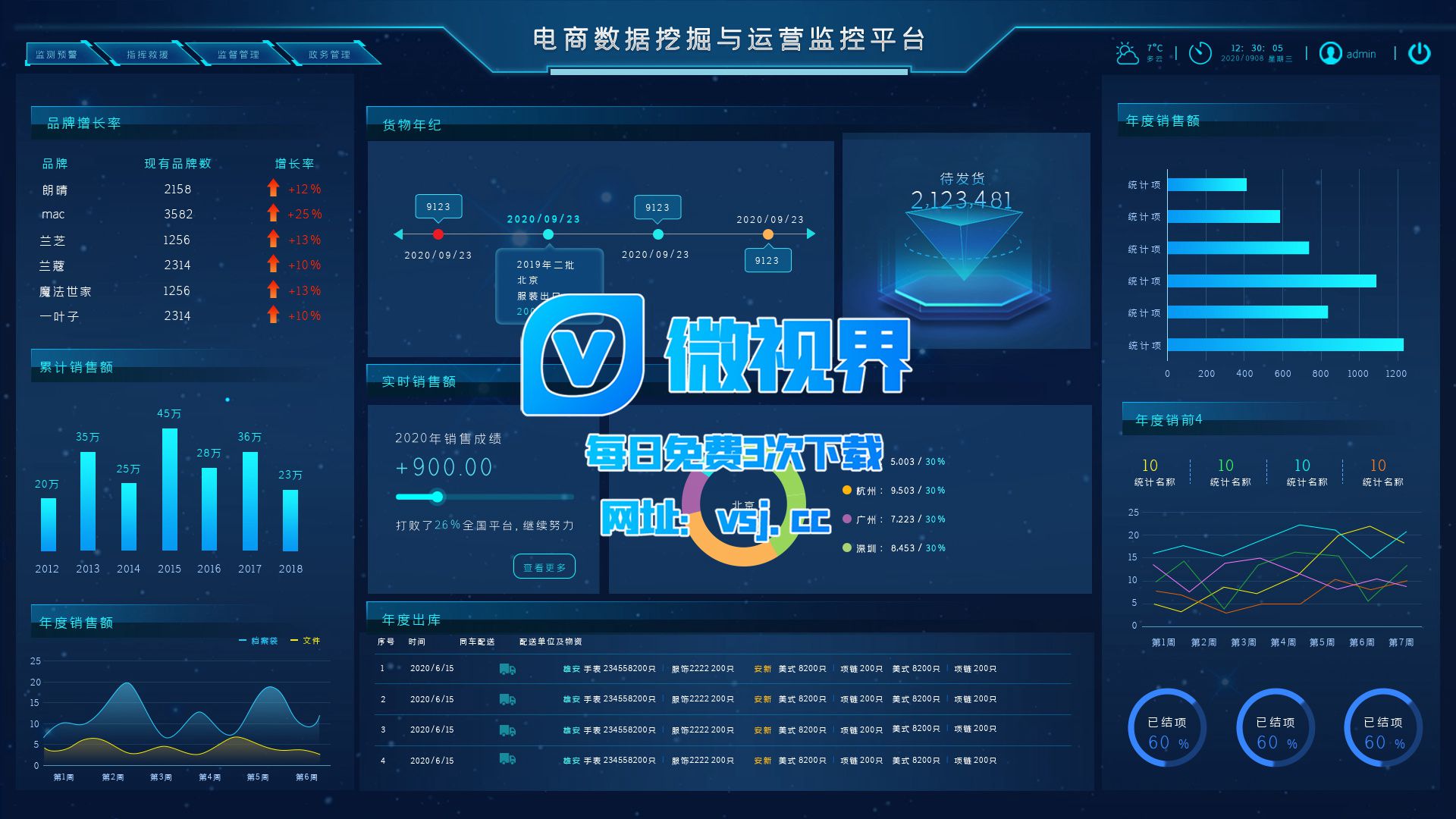 1132_【大屏UI】电商数据挖掘可视化_PSD素材下载更多免费内容请访问微世界VSJ.cc 声明:本站所有文章,如无特殊说明或标注,均为网络收集。任何个人或组织,在未征得原作者同意时,禁止商用。如若本站内容侵犯了原著者的合法权益,可联系我们进行处理。