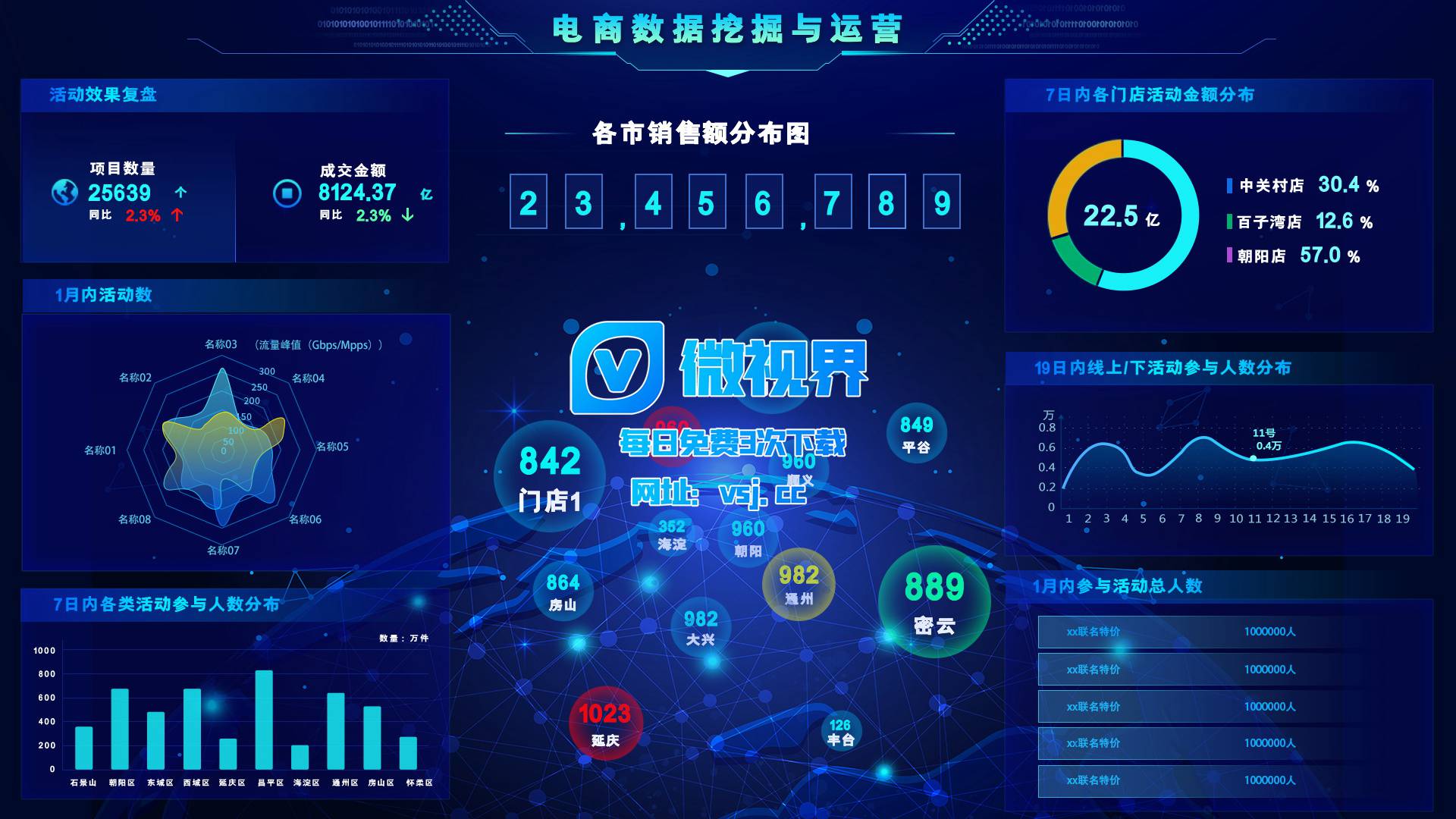 1134_【大屏UI】电商数据挖掘系统_PSD素材下载更多免费内容请访问微世界VSJ.cc 声明:本站所有文章,如无特殊说明或标注,均为网络收集。任何个人或组织,在未征得原作者同意时,禁止商用。如若本站内容侵犯了原著者的合法权益,可联系我们进行处理。