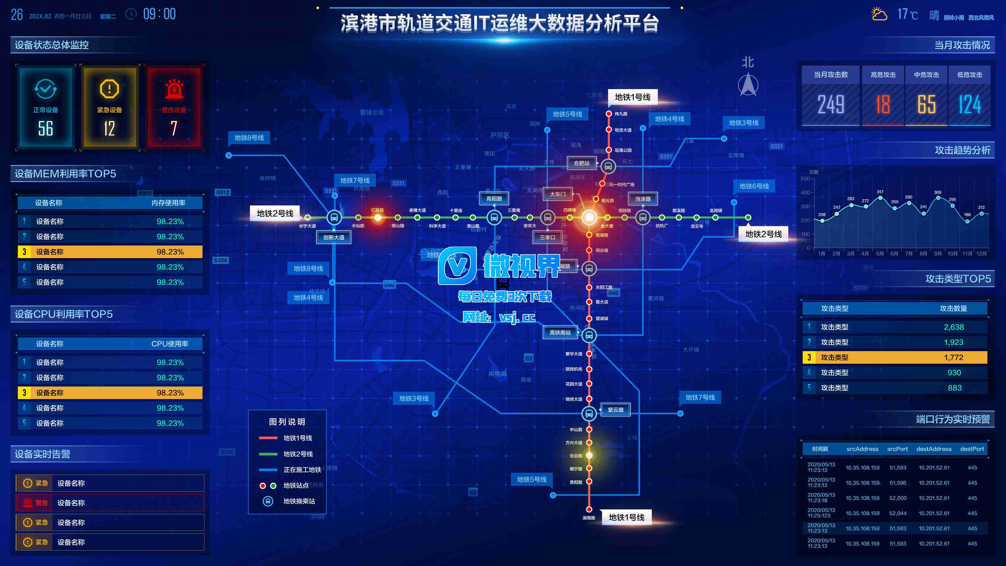 1148_【大屏UI】轨道交通运维可视化数据_PSD素材下载更多免费内容请访问微世界VSJ.cc