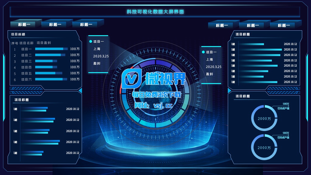 1171_【大屏UI】科技风格可视化界面_PSD素材下载更多免费内容请访问微世界VSJ.cc 声明:本站所有文章,如无特殊说明或标注,均为网络收集。任何个人或组织,在未征得原作者同意时,禁止商用。如若本站内容侵犯了原著者的合法权益,可联系我们进行处理。